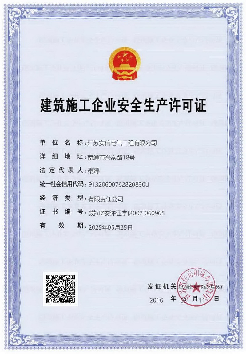 在創(chuàng)業(yè)之初,公司就堅持高起點的戰(zhàn)略思路,廣納賢才,集聚行業(yè)精英,創(chuàng)新發(fā)展,做優(yōu)企業(yè)品牌。現(xiàn)已取得:承裝二級、承修二級、承試二級,電力工程施工總承包二級,輸變電工程專業(yè)承包二級,建筑工程施工總承包二級,建筑機電安裝專業(yè)承包二級,地基基礎(chǔ)專業(yè)承包二級資質(zhì)證書,并通過了質(zhì)量、環(huán)境、職業(yè)健康和安全管理體系認證,確保各項工作有序管控。